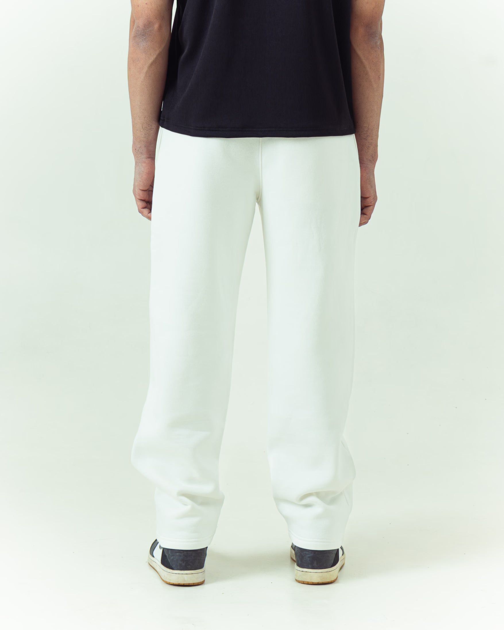 Crafted with a refined drape and a pure white finish, these sweatpants blend comfort with quiet sophistication.